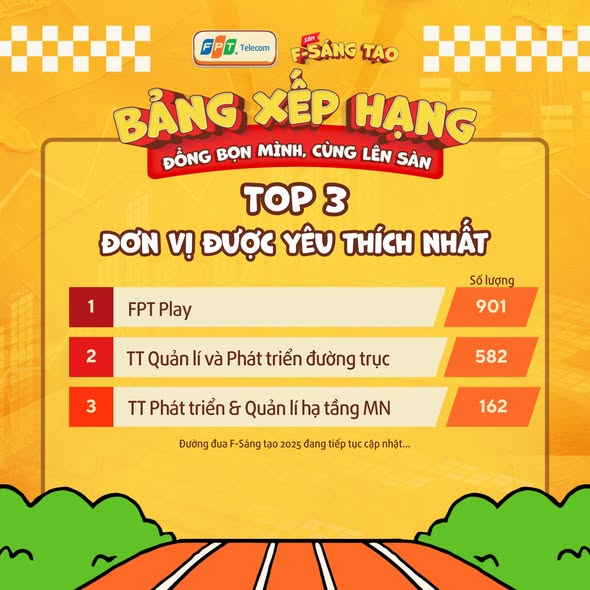 FPT Play tiếp tục khẳng định vị thế khi giữ vững TOP 1 ở cả ba hạng mục quan trọng của bảng xếp hạng F – Sáng tạo: đơn vị có nhiều ý tưởng nhất, nhiều sáng kiến nhất và được yêu thích nhất.